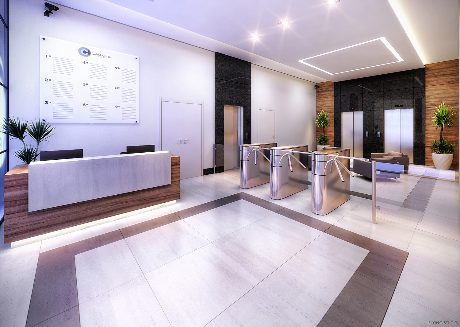 Recepção com elevadores de última geração e catracas eletrônicas, para maior segurança e comodidade.